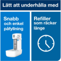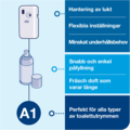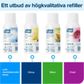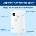 Automatisk dispenser til Tork luftfrisker spray. Ved påfylling benyttes duftrefill som passer til A1-systemet fra Tork.