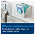 Oppvaskklut Tork Premium Grønn er en langvarig og slitesterk rengjøringsklut som kan brukes gang på gang. Kluten er tilgjengelig i fire forskjellige farger for å unngå krysskontaminering.