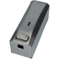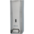 Låsbar såpe- og skumsåpedispenser i børstet stål fra KATRIN-system. Patronen og pumpen danner en lukket enhet som motvirker lekkasje og tilstopping i pumpen. Mål: 100x124x275 mm.