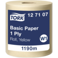 Torkpapper Tork Basic W1 Gul är ett gult 1-lagers returfibersbaserat industritorkpapper på rulle för enklare avtorkningsuppgifter. Operforerat, 1190m.