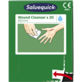 Sårvaskere 20-pakning Salvequick Sårvaskere erstatter bomull og sårvask i flaske. Enkle og praktiske å bruke. Godt beskyttet i sine emballasjer. Rensevæsken består av steril fysiologisk saltvannsløsning.