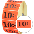 Prisetikett med 10:-, perfekt for å merke varer som har fått prisreduksjon. Bruk etiketten i butikken eller på loppemarkedet.