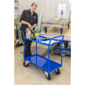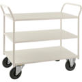 Vit, helsvetsad hyllvagn i tre plan från Kongamek. Denna robusta plåtvagn i tre plan är lämplig för tyngre laster i tuffare miljöer.