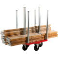 Smidig pallkragsvagn som underlättar hanteringen av pallkragar i olika storlekar. Rejäla massiva gummihjul för säker transport. De fasta hjulen monteras med fördel på långsidan för bästa manövrering. Pulverlackerad med elförzinkade stolpar, helsvetsad.