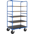 Lättmanövrerad etagevagn i en pulverlackerad stålkonstruktion med fem hyllplan av härdigt laminat. Etagevagn ur serien 300 från Kongamek har en perfekt samansättning av kvalitet och funktion.