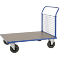 Pulverlackerad nätgavelvagn med laminatskiva, massiva gummihjul och 25 mm stålrörsbyglar. Praktisk i många miljöer och användbar inom flera branscher.