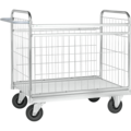 En mycket praktisk paketvagn utrustad med grålackerat handtag som kan fästas på önskad höjd. Paketvagn 300 kg från Kongamek har en vit laminatbotten och smidiga avtagbara sidogaller för enkel hantering och lätt skötsel.