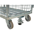 Tryckfot till rullcontainrar KM80-S, KM80 och KM86 från Kongamek. Denna effektiva broms används när man vill att vagnen ska stå still när man lastar.