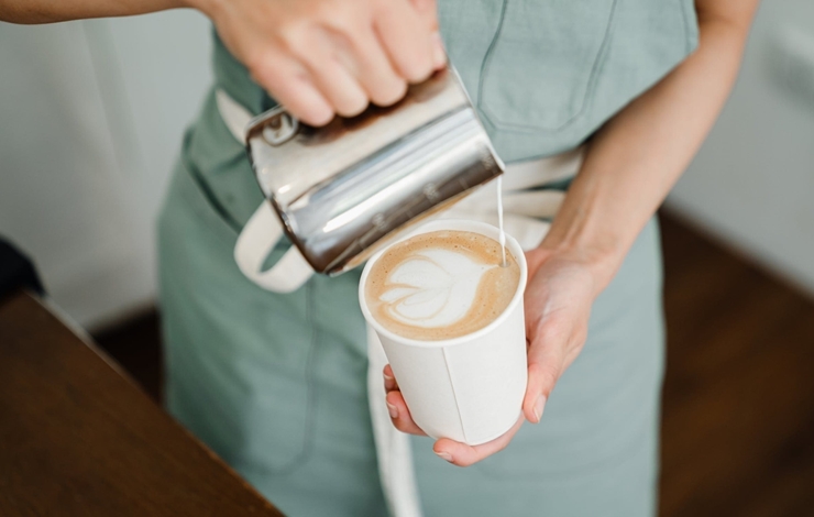 - Caffé Latte: er lavet af espresso (25%), og varm mælk (75%) og afsluttes med et tyndt lag skummet mælk på toppen