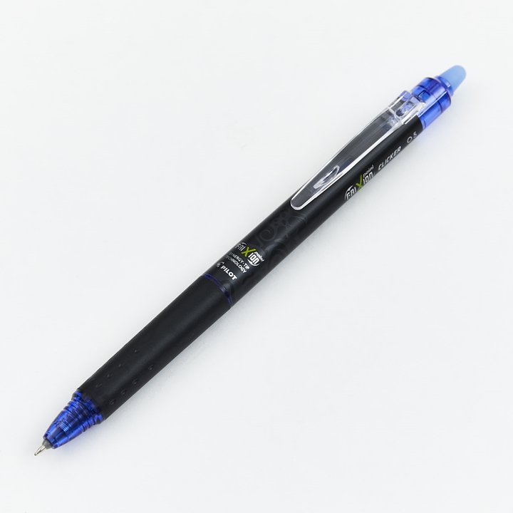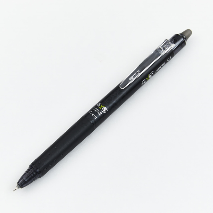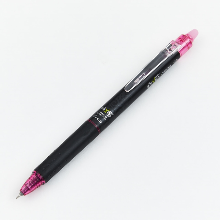 FriXion Point Clicker er en sletbar blækpen med en 0,5 mm spids. Rollerballpennen er vandbaseret og har en jævn blækstrøm, der skaber en tynd og fin skrift og en behagelig skriveoplevelse. Clicker Point har en smart sort design med detaljer, der viser blækkets farver.