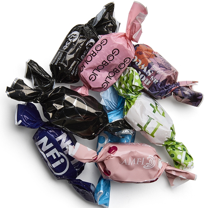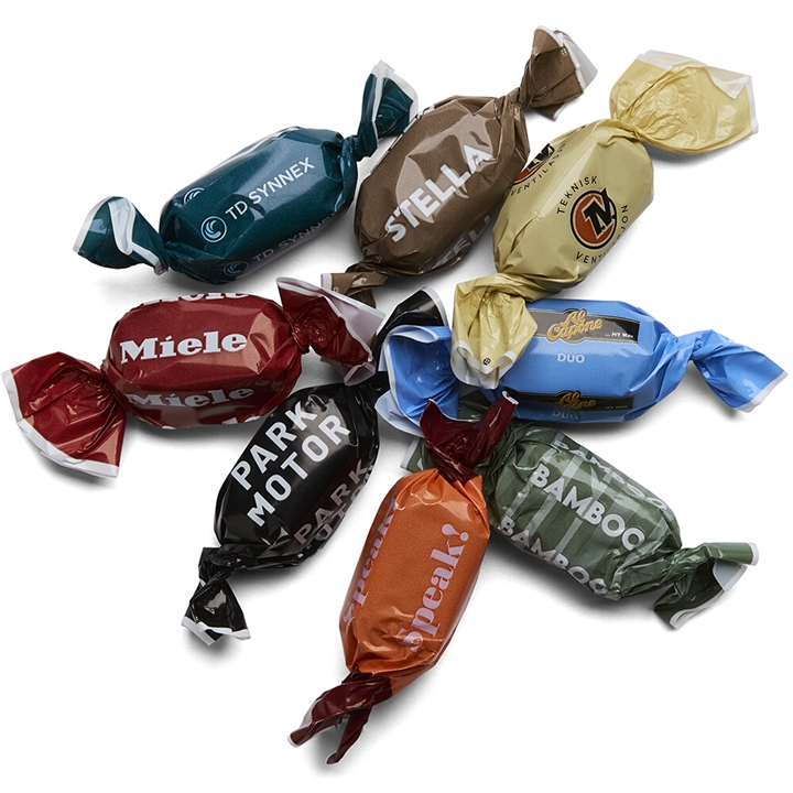 Slik med tryk i luksuskvalitet og uimodståelige smagsvarianter – en sød måde at profilere dit brand på. Vores tvistede karameller fremstilles i et svensk karamelfabrik og fås i mange smagsvarianter, fra cream caramel til frugtige og lakridsvarianter. For ekstra luksus findes chokoladeovertrukne karameller med klassisk karamel- eller lakridssmag. Slik, der skaber mindeværdige øjeblikke og styrker dit budskab.