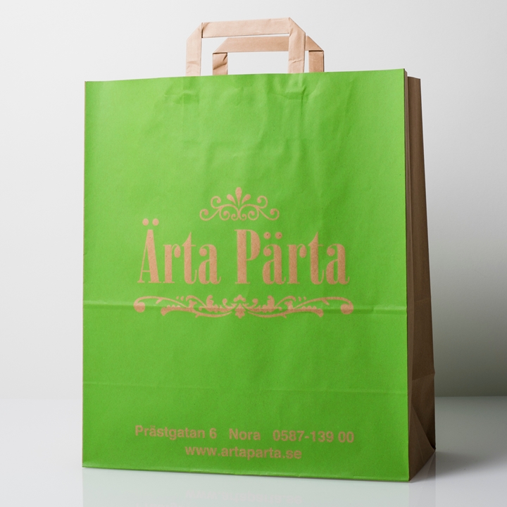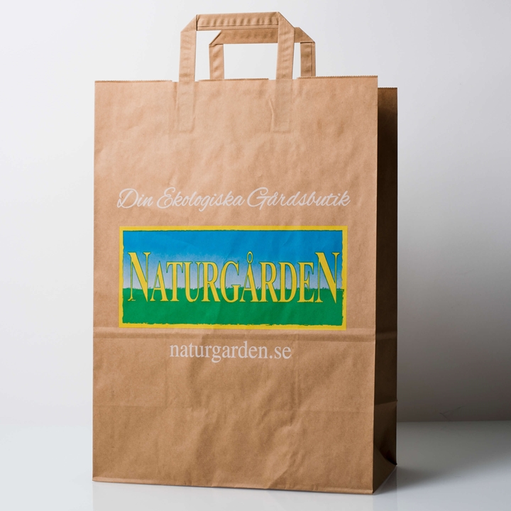Papperskassar med platta handtag har mycket bra tryckegenskaper och går att trycka upp till 8 färger.