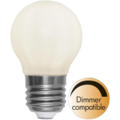 LED-lampe E27 G45 RA90 en helt opal lampe med høj farvegengivelse. Den har E27-fatning og er dæmpbar.