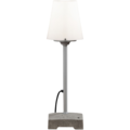 Bordslampa Lucca Låg Grå från Konstsmide. Stilfull lampa med betongfot och plastskärm för utomhusbruk. Passar perfekt som dekoration för utomhus platsen.