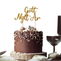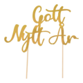 En tårtdekoation i guld med texten "Gott nytt år". Perfekt att dekorera efterätten till Nyår med om du vill ha det lilla extra!
