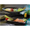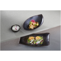 Oval skål i form av ett löv ur serien Marone från APS. Tillverkad i melamin och har en svart färg med brun kant som serverar rätterna på ett mycket stilfullt vis.