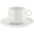 Vit kaffekopp i porslin ur serien Shiro från Schönwald. Nätt och rundad design med öra. Passar fint till kaffebaren eller caféet.