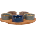 Stilren serveringstallrik med 5 skålar från Cosy & Trendy. Brädan är tillverkad i trä och skålarna är av stengods. Setet passar att användas på restauranger där man serverar små rätter tillbords.