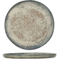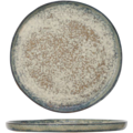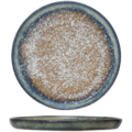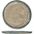 Rund tallrik i brun färg med blå kant ur serien Begona från Cosy & Trendy. Tallriken är tillverkad av stengods och fångar blickarna tack vare sina vackra färgnyanser och rustika form.