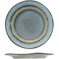 Rund Tallrik i grön färg med mörk kant ur serien Pullox från Cosy & Trendy. Tallriken är tillverkad i stengods och passar perfekt att användas på restauranger och hotell.