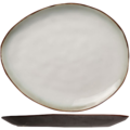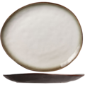 Oval Tallrik i matt vit och brun färg ur serien Plato från Cosy & Trendy. Tallriken är tillverkad i porslin och passar perfekt att användas på restauranger och hotell.
