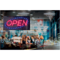 Ledskylt OPEN från Securit. Ge er restaurang eller verksamhet den uppmärksamhet den förtjänar med denna klassiska ledbelysta skylt med texten ”open”. Två färger och blinkande ljus låter alla se att ni har öppet och är redo för att leverera!