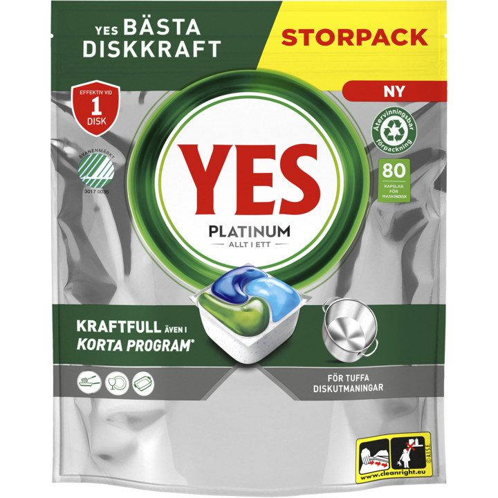 Maskinopvaskemiddel Yes Platinum Alt i ét 80 stk.