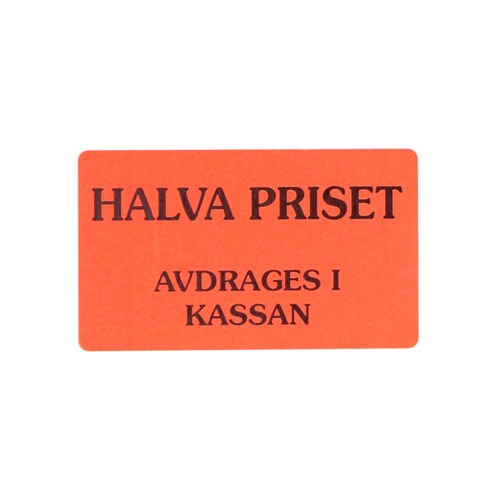 Etikette halv pris trækkes fra kassen 50x30mm flouro rød