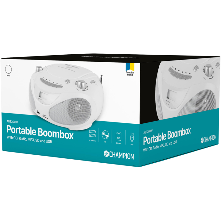 Boombox Champion CD/Radio/AUX/USB Portabel Vit