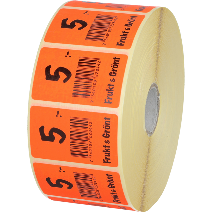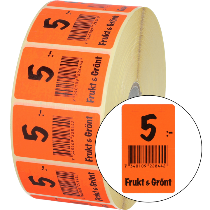 Etikette Frugt & Grønt 5:- 30x50mm flouro rød