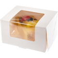 Hvid bagværksemballage med vindue. Emballagen er hurtig og nem at folde sammen ved hjælp af Quicklock-funktionen. Perfekt til bagværk som muffins, semlor og kagebidder.