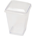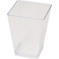 Transparent konformet firkantet bæger til servering af småretter og desserter.