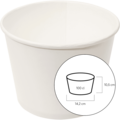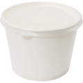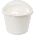 Hvide runde universalkopper i papir, der passer perfekt til salater, supper, slik, is og meget mere. Vælg mellem vores forskellige låg alt efter hvad der passer bedst til jeres behov.