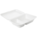 Klassisk stor 2-facks take-away boks i bagasse med vedhæftet låg af høj kvalitet, som fungerer perfekt til servering af fastfood som f.eks. hamburgere, pomfritter, salater og kebabtallerkener.