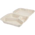 Takeawayboks med 3 rum lavet af ubleget bagasse med 2-fløjet lukning. Perfekt når du vil holde ingredienserne i en ret adskilt – både for at bevare friskheden og undgå, at smagene blander sig. Velegnet til klassisk fastfood, kebab- og salattallerkener samt asiatiske retter.
