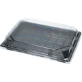 Klassisk sushiform i smidigt udførelse! Mål for både sushiform og låg 25x19x5 cm, fremstillet i PS-plast og har en sort bund med et transparent låg, som er inkluderet.