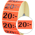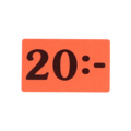 Prismærkningsetiket med 20:-, perfekt til at mærke varer, som der er blevet prissænket på. Brug etiketten til butikken eller loppemarkedet.
