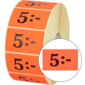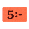 Prismærkningsetiket med 5:-, perfekt til at mærke varer, som der er blevet prissat ned på. Brug etiketten til butikken eller loppemarkedet.