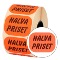 Prismærkningsetiket med teksten "Halv pris" bruges i butikken, der skal sælge ud eller nedsætte sine varer. Den røde farve får kunderne til at lægge mærke til prisen og produktet.