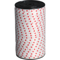 Gavebånd med hjerte mønster. Et lidt smallere gavebånd, der giver en fin følelse til indpakningen. Båndet er spundet på rulle for at kunne bruges med båndstativer, det vil lette indpakningen i butik.