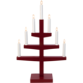 Röd träljusstake med sju ljusskällor. Placera ljusstaken exempelvis i fönstret för att skapa en härlig adventstämning i hemmet. Ljusstaken har en kabellängd på 180 cm.