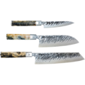Knivset från serien Satake Ame. En unik serie knivar som kännetecknas av balans och kraftiga material. Knivbladets design är både snyggt och funktionellt då det förhindrar att råvaror fastnar på baksidan när man skär.