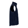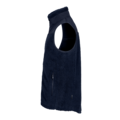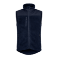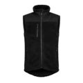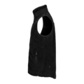 Sherpafleece väst i återvunnen polyester. Avvikande material i polyester/bomull på skulderpartiet. Två sidfickor och en bröstficka samt elastiska armhålor.