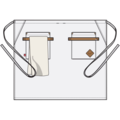 Klassisk forklæde med smæk og regulerbart nakkebånd og lomme i højre side. Poselomme i højre side og nøgleholder. Strop til ophængning.