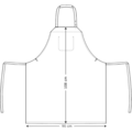 Brystforklæde med brystlomme på indersiden. Justerbart nakkebånd med knap og knaphul. Syede bånd. Remme til ophængning. Knapperne er velegnede til mangling.