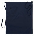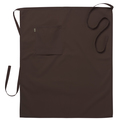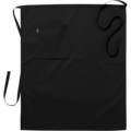 Taljeforklæde med lomme i højre side, pose og nøglestrop. Strop til ophængning.