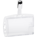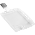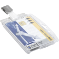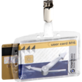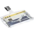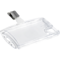 Täckt passerkorthållare med clips för 2 passerkort i standardformat (ca 54x86mm). Skyddar effektivt passerkort, id-kort med mera. Går att använda i både liggande och stående format.