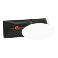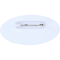 Hvidfarvet navneskilt med nål på bagsiden. Brug dymo-tape til mærkning af navne.
