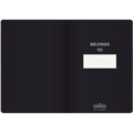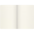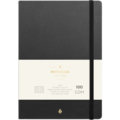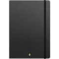 Notesbog Deluxe Sort A5 er en indbundet notesbog med blødt omslag i sort kunstlæder, elastikbånd og bogmærkebånd fra Burde. En plastlomme til løse noter findes bagest.