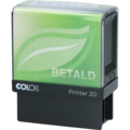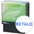 En smidig stempel med teksten "BETALT", som er fremstillet af mindst 65% genanvendt materiale. Der medfølger en blå blækpatron. Indekset er stort, så du lettere kan se, hvor du stempler.